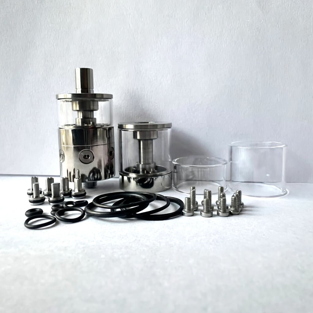 韓国の銘Modder、Holy Attyの新ブランド「Sight Pic」が提唱する「pNeumatyca」。本モデルは、その設計思想を忠実に再現しつつ、メイン素材にチタン(Titanium)を取り入れた「Ti Education」仕様のクローンモデルです。ステンレスとは一線を画す、その軽さと独特の金属光沢が、あなたのVAPEコレクションに新たな気品をもたらします。